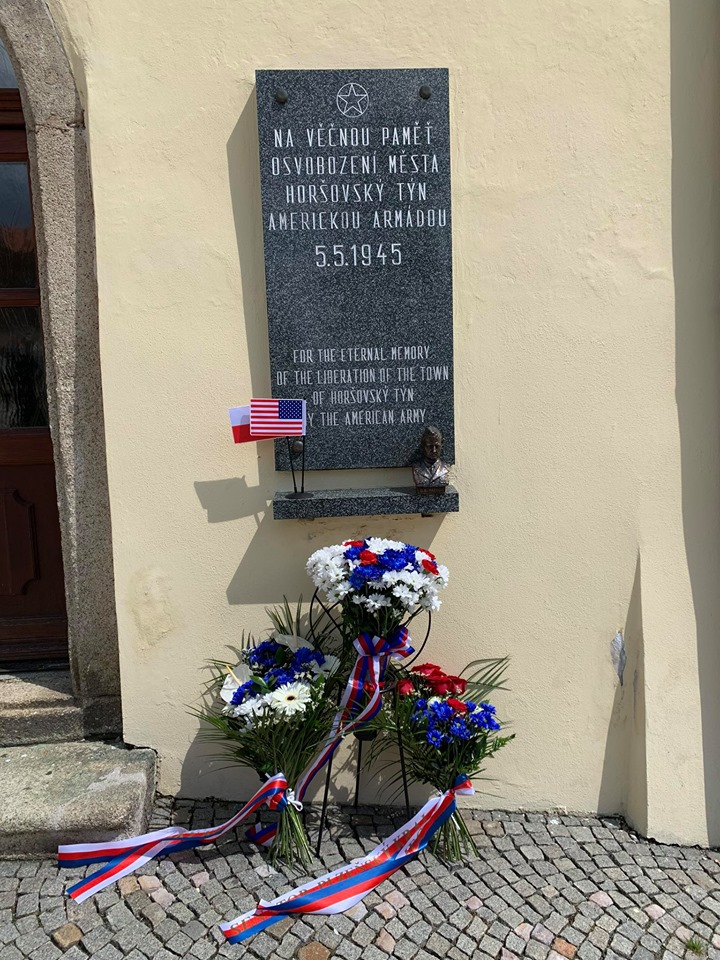 Starosta města Ing. Josef Holeček, radní Plzeňského kraje pro oblast životního prostředí a zemědělství Mgr. Radka Trylčová a senátor PČR Ing. Vladislav Vilímec si 5. května 2020 připomněli 75. výročí osvobození Horšovského Týna a uctili památku položením květin k pamětní desce u Městského úřadu.
