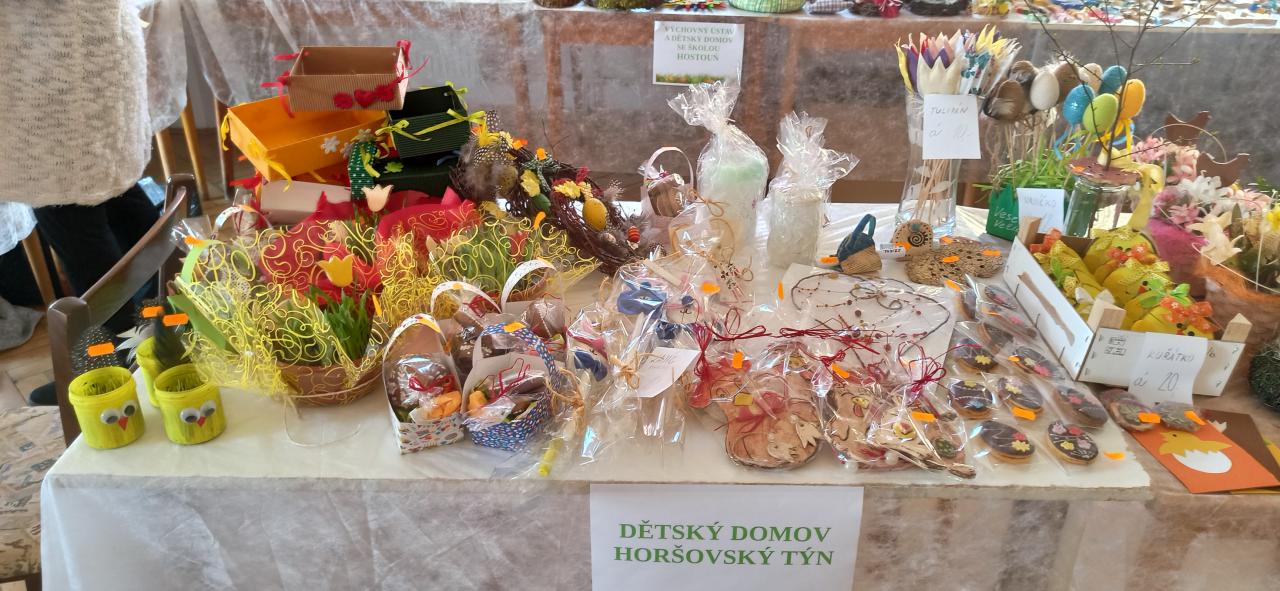 Prostory výstavního sálu zcela zaplnily výrobky dětí ze Základní školy a odborné školy Horšovský Týn, Výchovného ústavu z Hostouně, Soukromé školy Adélka Mašovice, Dětského domova v Nové Vsi, Dětského domova ve Staňkově, Robinsona Klenčí pod Čerchovem či klienti Sociálně terapeutické dílny sv. Josefa v Meclově.