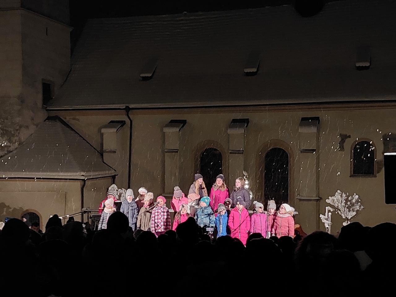 Tradiční hudební závěr předvedly děti z MŠ Vančurova. Písničky se naučily se svými učitelkami Alenou Lechnýřovou, Vladimírou Holou, Evou Petriščeovou a Jiřinou Odvodyovou. Poté Anděla se skřítkem Emílkem a dětmi rozsvítili nádherně ozdobený strom kouzelným přáním „Světýlko přijď, stromečku sviť“.