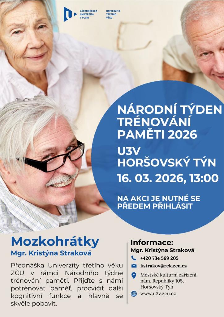 Národní týden trénování paměti 2026, U3V Horšovský Týn. Na akci je nutné se přihlásit předem.