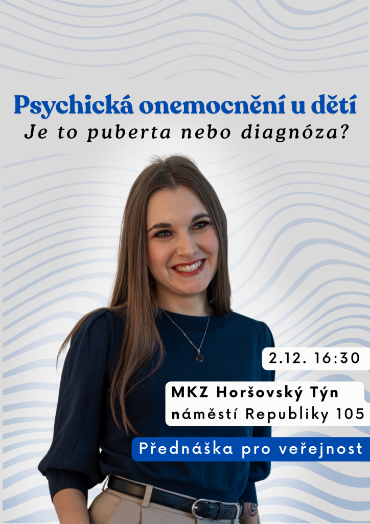 Přednáška - Psychická onemocnění u dětí 2. 12. od 16:30 hodin sál Městského kulturního zařízení Horšovský Týn.
