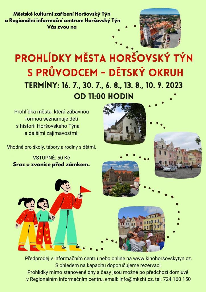 MKZ a RIC Horšovský Týn Vás zvou na PROHLÍDKU MĚSTA S PRŮVODCEM - DĚTSKÝ OKRUH, která zábavnou formou seznamuje děti s historií Horšovského Týna a dalšími zajímavostmi.