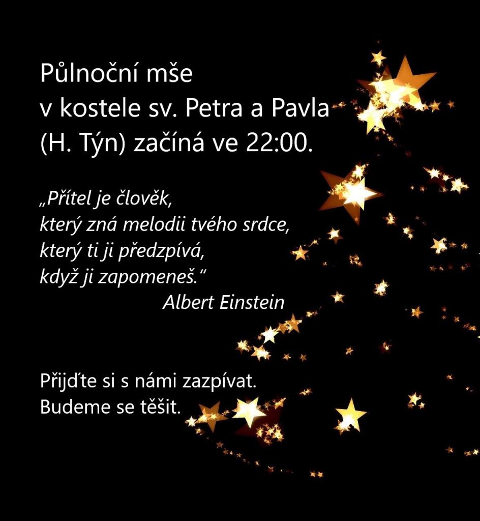 Farnost Horšovský Týn srdečně zve 24. prosince 2022 do kostela sv. Petra a Pavla v Horšovském Týně na Půlnoční mši, která začíná ve 22:00 hodin.