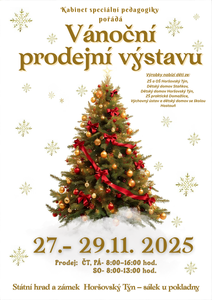 Kabinet speciální pedagogiky ZŠ a OŠ Horšovský Týn zve na Vánoční prodejní výstavu, která se koná na Státním hradě a zámku Horšovský Týn.