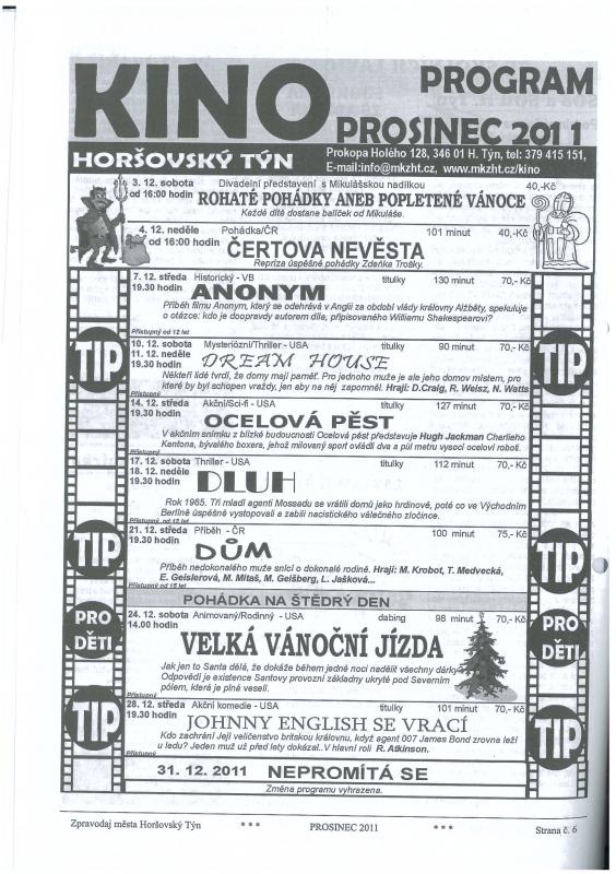 Program kina Horšovský Týn - květen 2026